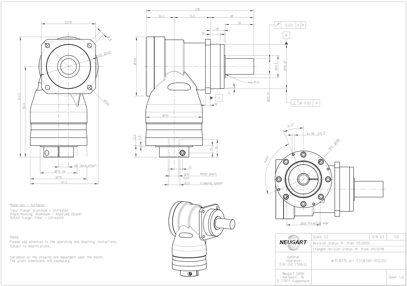 WPLN直角行星減速機(jī)配有雙曲面齒輪,在運(yùn)行時(shí)十分安靜,同步運(yùn)行性能得到了優(yōu)化,應(yīng)用設(shè)備的工件加工質(zhì)量水平大幅提升。而且由于采用雙曲面齒輪,這款減速機(jī)運(yùn)行時(shí)平穩(wěn)安靜,振幅降低。WPLN直角行星減速機(jī)全型號(hào)尺寸圖紙?jiān)诰€下載,減速機(jī)選型參考使用??陕?lián)系技術(shù)進(jìn)行選型服務(wù),提供減速機(jī)與電機(jī)動(dòng)態(tài)負(fù)載圖。
