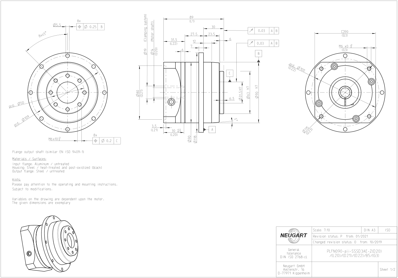 PLFN110 gearbox structure and dimension drawing
