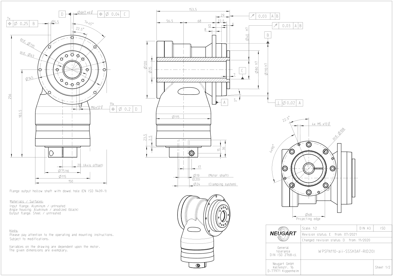 WPSFN is a NEUGART geared right-angle planetary gearbox with flanged output shaft and hollow shaft, which can be easily and quickly integrated into the system thanks to the standardized flange interface. The quality of the machined surface is achieved by optimizing the synchronizing function through the hypoid and helical planetary system. Download the drawings of the angular disc output planetary gearbox, download the model drawings of the full series of gearboxs, and download the drawings of the gearbox with different sizes and speed ratios.